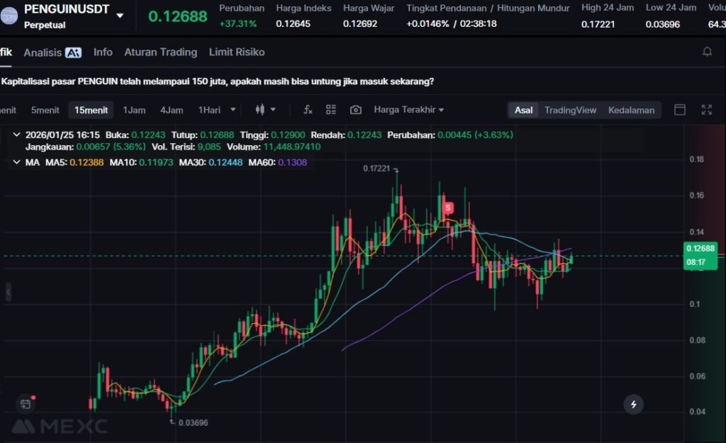 $PENGUIN mencatat kenaikan +68.48% dalam 24 jam terakhir, didorong oleh lonjakan volume transaksi dan meningkatnya aktivitas komunitas. Pergerakan harga ini menunjukkan kuatnya minat spekulatif terhadap meme coin dengan narasi unik.