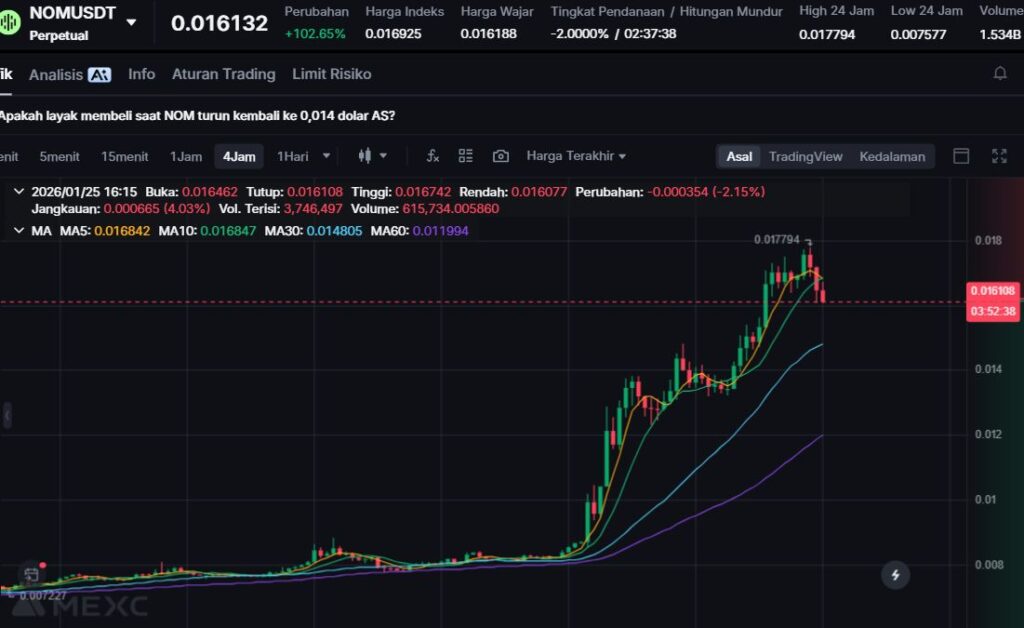 $NOM melonjak +64.49%, mencerminkan meningkatnya kepercayaan pasar terhadap proyek infrastruktur yang berfokus pada automasi trading lintas rollup.