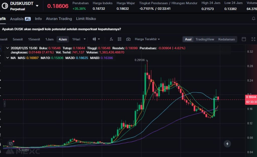$DUSK naik +34.26%, menandakan pemulihan kuat di sektor privasi dan tokenisasi aset dunia nyata (RWA).