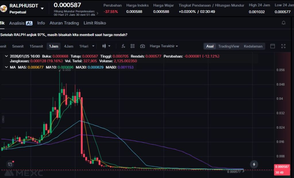 $RALPH terkoreksi -23.72%, mencerminkan aksi ambil untung setelah reli berbasis meme dan pop culture.