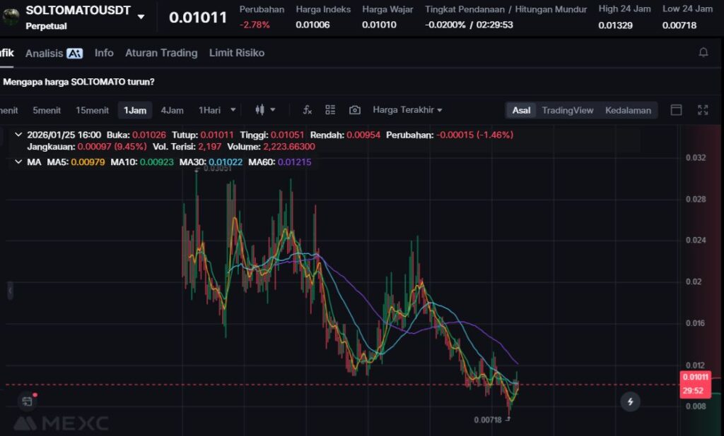 $SOLTOMATO melemah -18.46%, seiring meredanya momentum hype komunitas dalam beberapa hari terakhir.