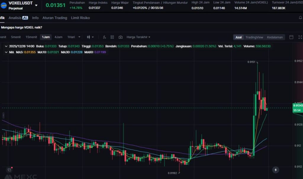 VOXEL naik 18.94% didorong oleh sentimen positif terhadap game blockchain yang mulai pulih menjelang akhir tahun. Permintaan token gaming meningkat seiring tingginya aktivitas komunitas di sektor ini.