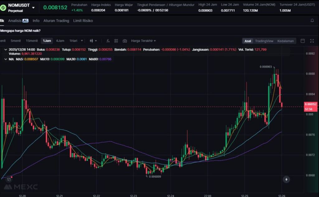 NOM naik 9.61% mengikuti tren positif DeFi lintas chain dan protokol trading otomatis. Momentum juga didorong oleh perkembangan fitur interoperability yang terus berkembang.