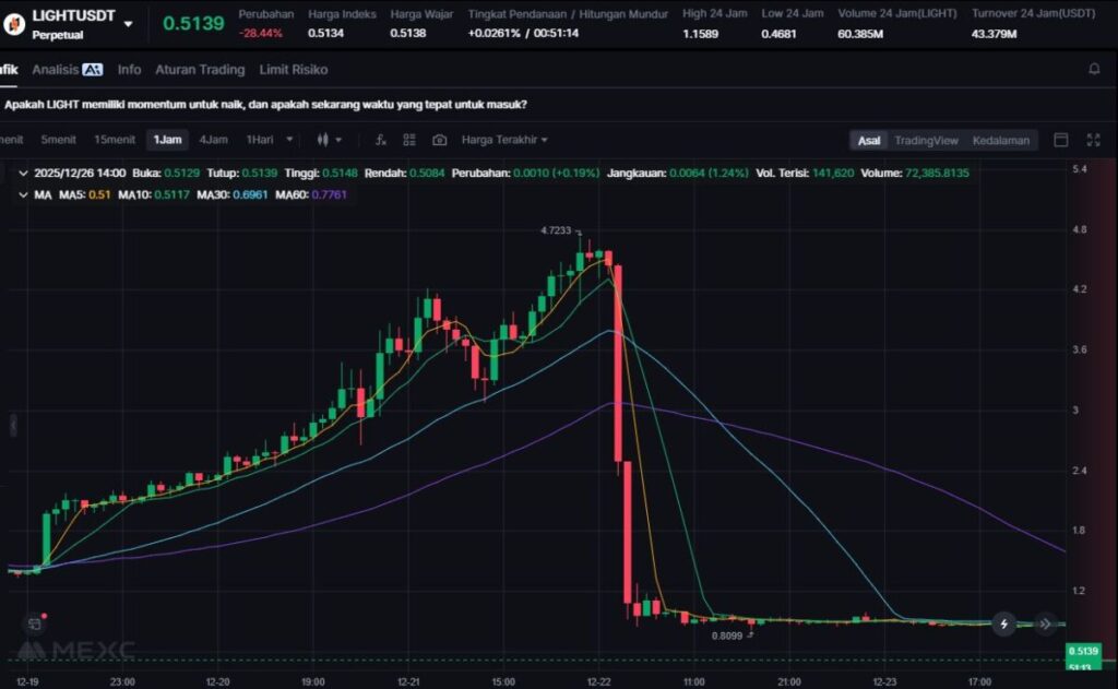 Di sisi lain, koreksi yang terjadi pada SENTIS, LIGHT, dan ZENT lebih mencerminkan normalisasi harga setelah reli kuat sebelumnya. Volatilitas tetap tinggi, sehingga trader perlu berhati-hati menghadapi pergerakan market yang cepat.