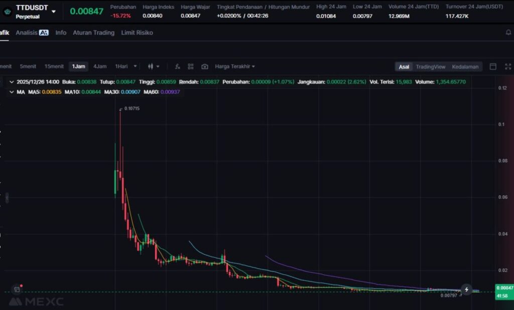 TTD terkoreksi 18.60% setelah fase volatilitas tinggi dalam beberapa hari terakhir.