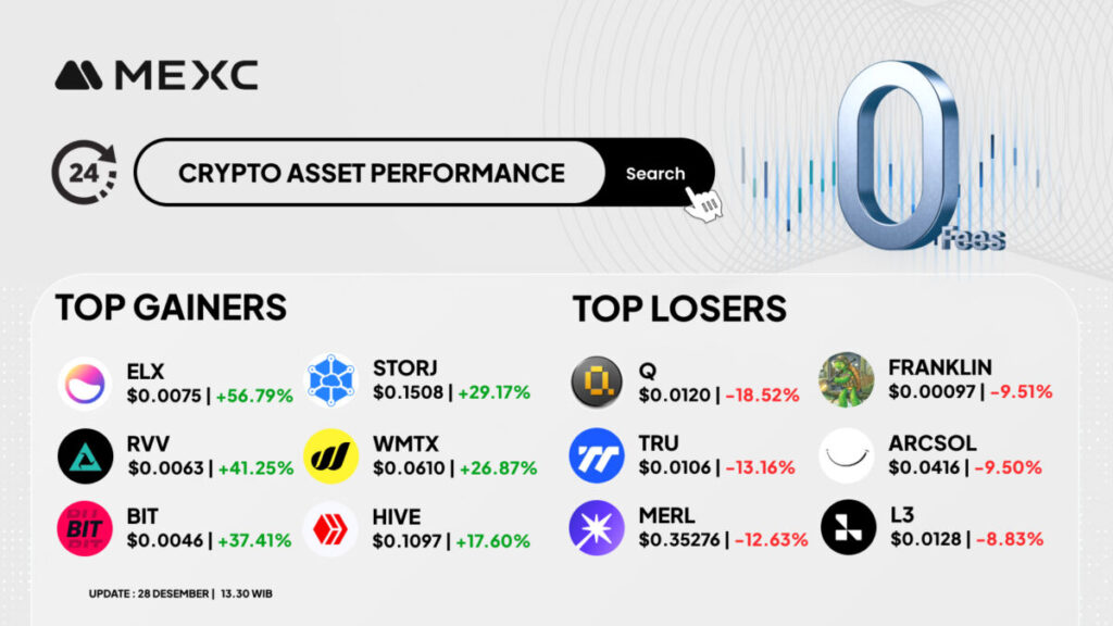 Berikut rangkuman performa Top Gainers dan Top Losers di MEXC hari ini.