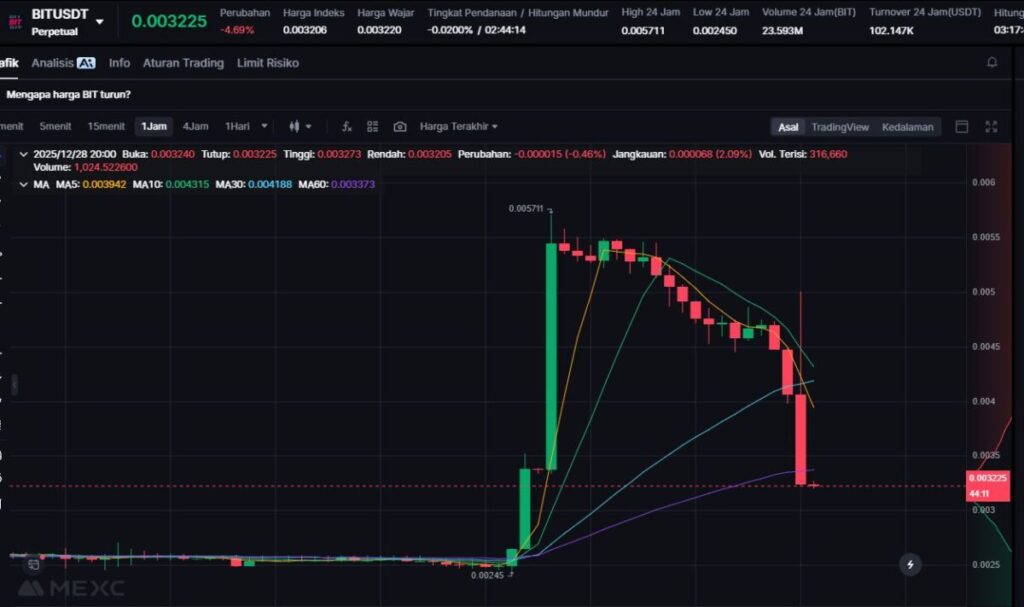 BIT naik 37.41% didorong oleh kuatnya narrative Solana launchpad dan model bonding curve yang kembali populer.