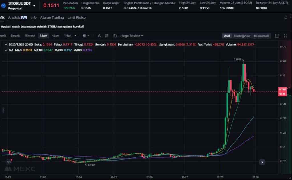 STORJ menguat 29.17% seiring meningkatnya permintaan akan storage terdesentralisasi, terutama berkaitan dengan data AI dan cloud alternatif.