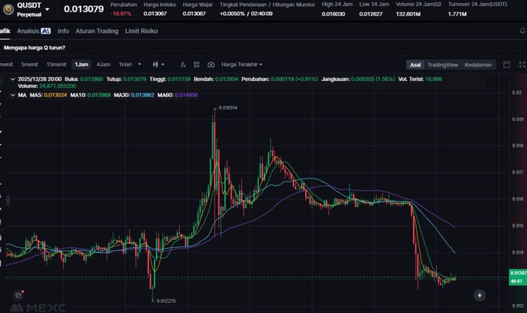 Q turun 18.52% setelah reli besar sebelumnya, sehingga memasuki fase koreksi alami menjelang akhir tahun.