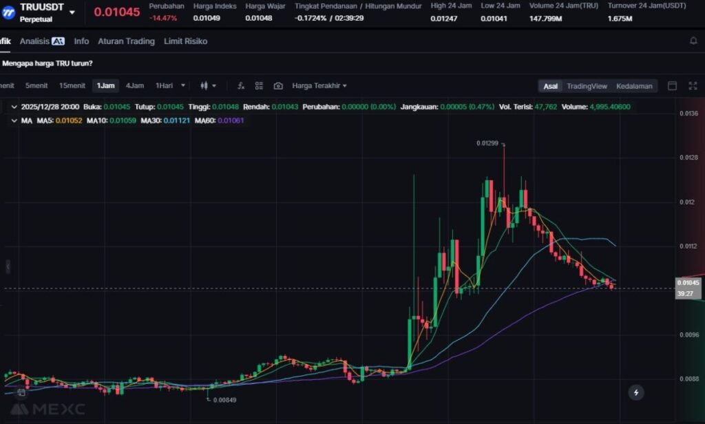 TRU melemah 13.16% seiring turunnya minat pada sektor RWA lending dalam dua hari terakhir.