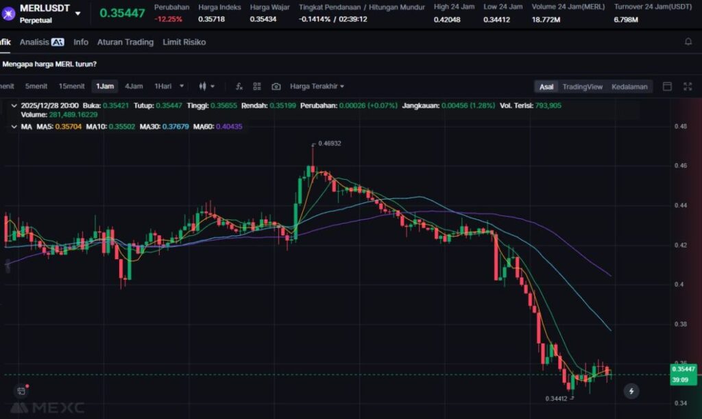 MERL terkoreksi 12.63% setelah hype BTC Layer-2 sedikit mereda.