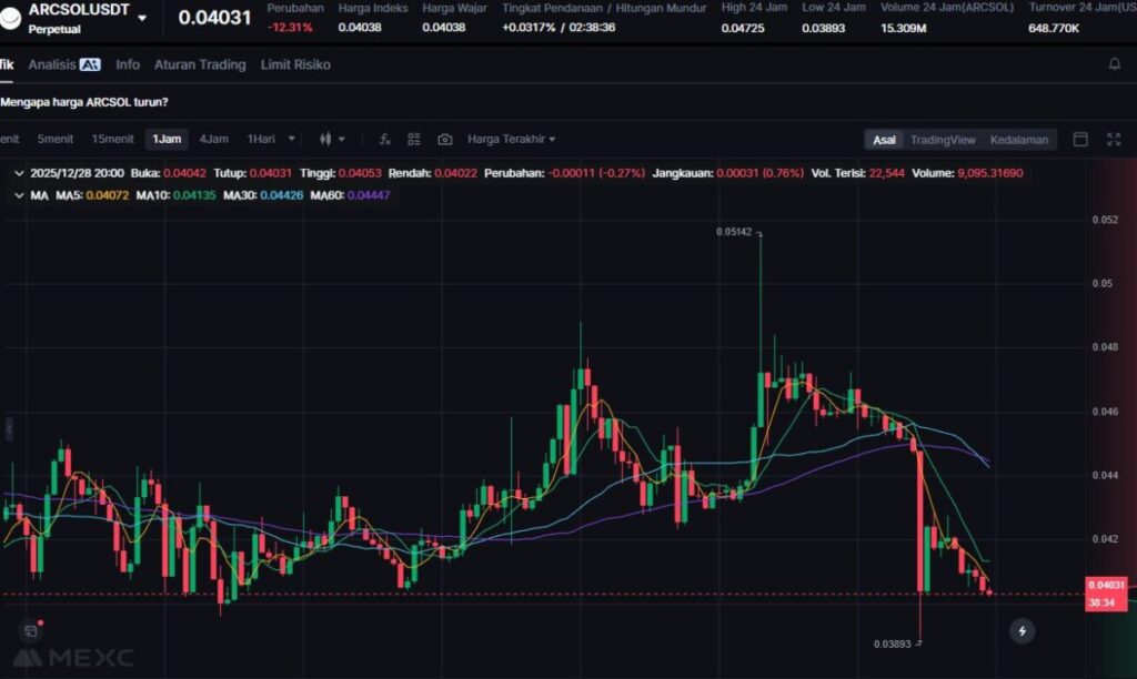 ARCSOL melemah 9.50% setelah sebelumnya sempat mencatatkan reli cepat.