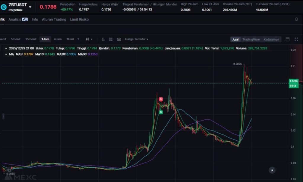 ZBT menjadi top gainer hari ini dengan kenaikan hampir 84%, dipicu oleh meningkatnya aktivitas trading dan antusiasme pada ekosistem Zerobase. Lonjakan volume menunjukkan adanya minat kuat dari trader momentum.