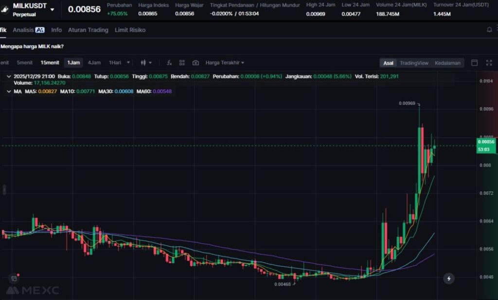 MILK sering menjadi bagian dari kategori high-volatility tokens, sehingga pergerakannya cepat dan mengikuti arus short-term sentiment.