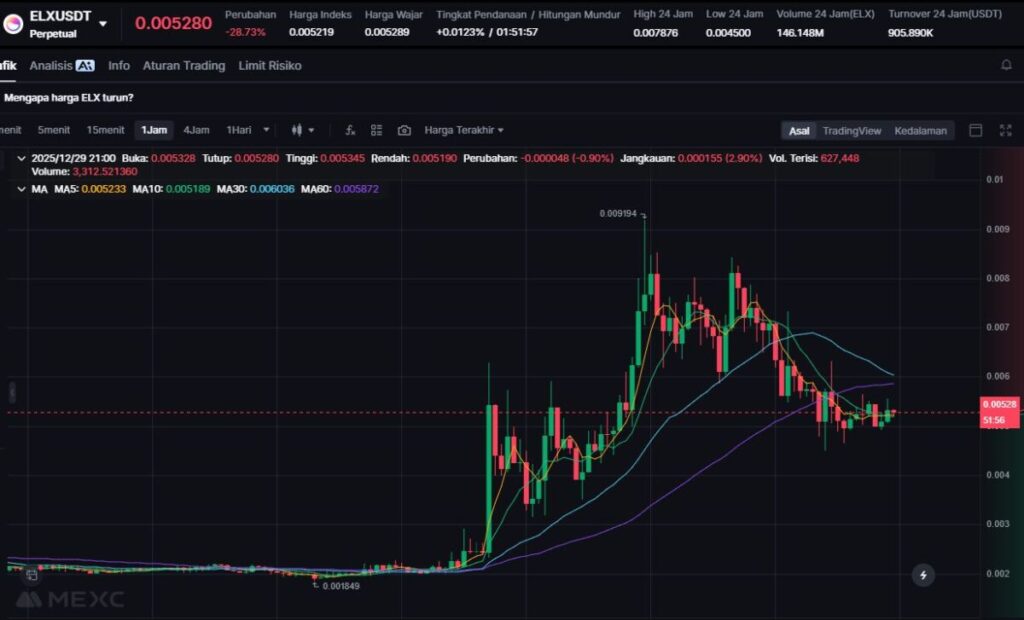 Meskipun terkoreksi, proyek ELX tetap mendapat perhatian karena posisinya dalam ekosistem modular liquidity dan orderbook.
