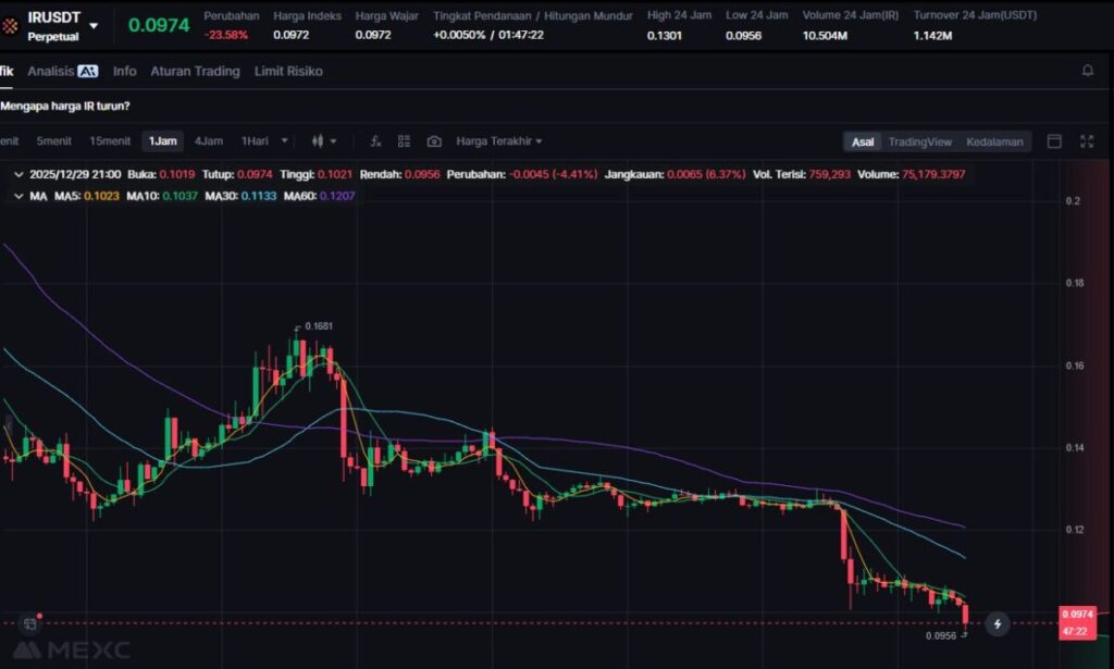 IR mengalami penurunan moderat sekitar 16% akibat tekanan jual dari trader jangka pendek. Volume jual meningkat dalam beberapa jam terakhir.