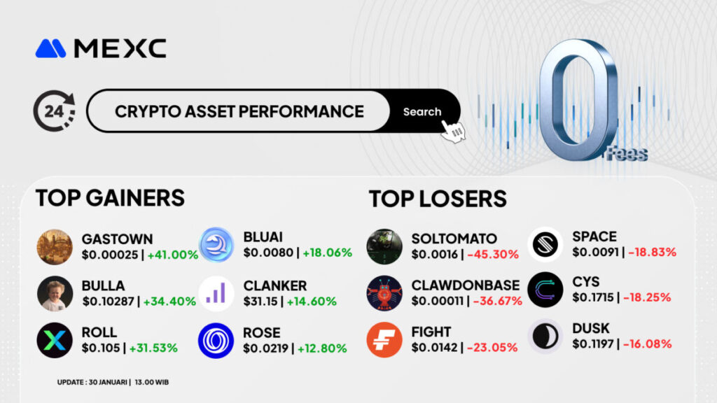 Berikut rangkuman Top Gainers dan Top Losers kripto di MEXC hari ini.