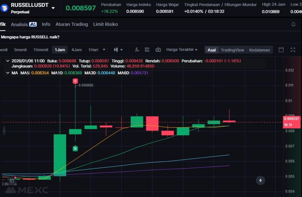 RUSSELL memimpin daftar penguatan hari ini dengan lonjakan +83.80% ke harga $0.0087. Kenaikan setajam ini biasanya menandakan momentum yang sangat kuat, namun volatilitas juga cenderung meningkat sehingga pergerakan bisa cepat berubah.
