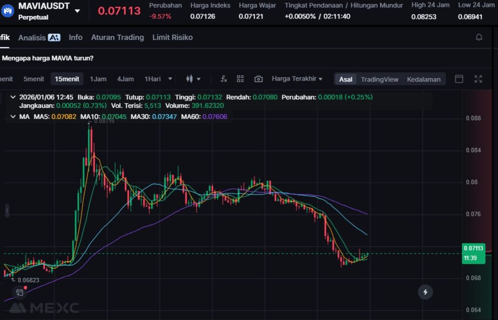 MAVIA terkoreksi -11.06% ke $0.0699. Penurunan ini menempatkannya di daftar losers hari ini, yang biasanya terjadi saat market mengurangi eksposur pada sektor tertentu, termasuk gaming token.